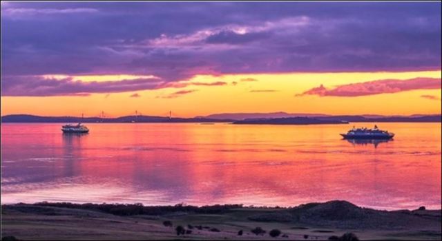 The Balmoral and Black Watch off Gullane Beach, East Lothian. The Forth Bridges are in the background. Boudicca is not far away…… All 3 ships quoted as clear of Covid-19 virus.