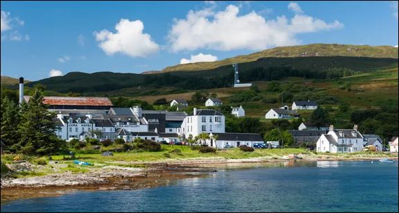 The main settlement is the east coast village of Craighouse, which is its capital.[8] Craighouse is home to the Jura distillery, producing Isle of Jura single malt whisky.[9] The village is also home to the island’s only hotel, shop and church. North of Craighouse there are a number of other settlements, all quite small and on or near the east coast: Keils, Knockrome, Ardfernal, Lagg, Tarbert, and Inverlussa.
