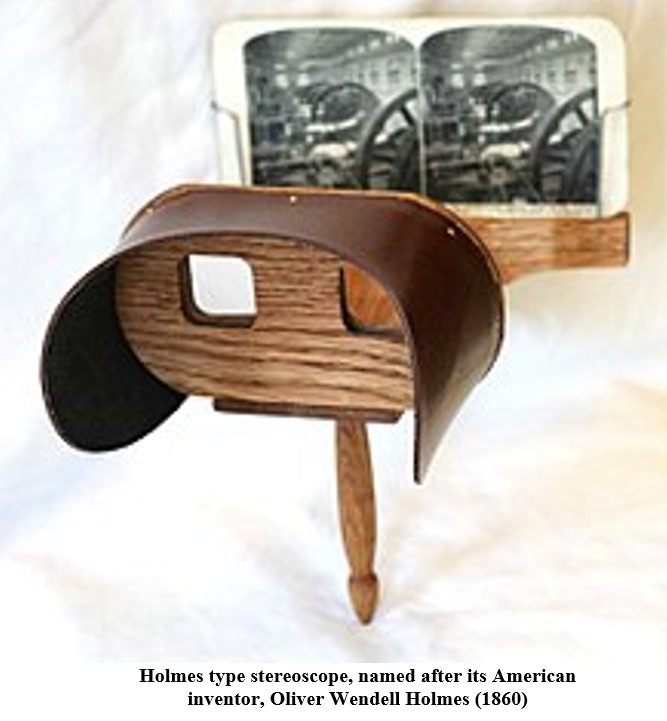 In around 1860, Holmes, an enthusiastic polymath, invented the “American stereoscope“, Later he wrote an explanation for its popularity, stating: “There was not any wholly new principle involved in its construction, but it did prove so much more convenient than any of the hand-instruments currently in use,. So much so that it gradually drove them all out of the field,” – at least as far as the Boston market was concerned.