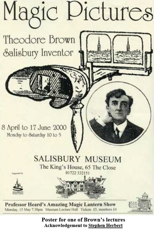 In the 1890s a Salisbury based engraver named Theodore Brown (1870 – 1938) who, over the years, had developed a fascination for optical toys, i.e. photography and stereoscopy, invented a system of mirrors attached to a single lens camera that created twin fields of view, thus enabling a stereoscopic image to be produced from a single lens camera.